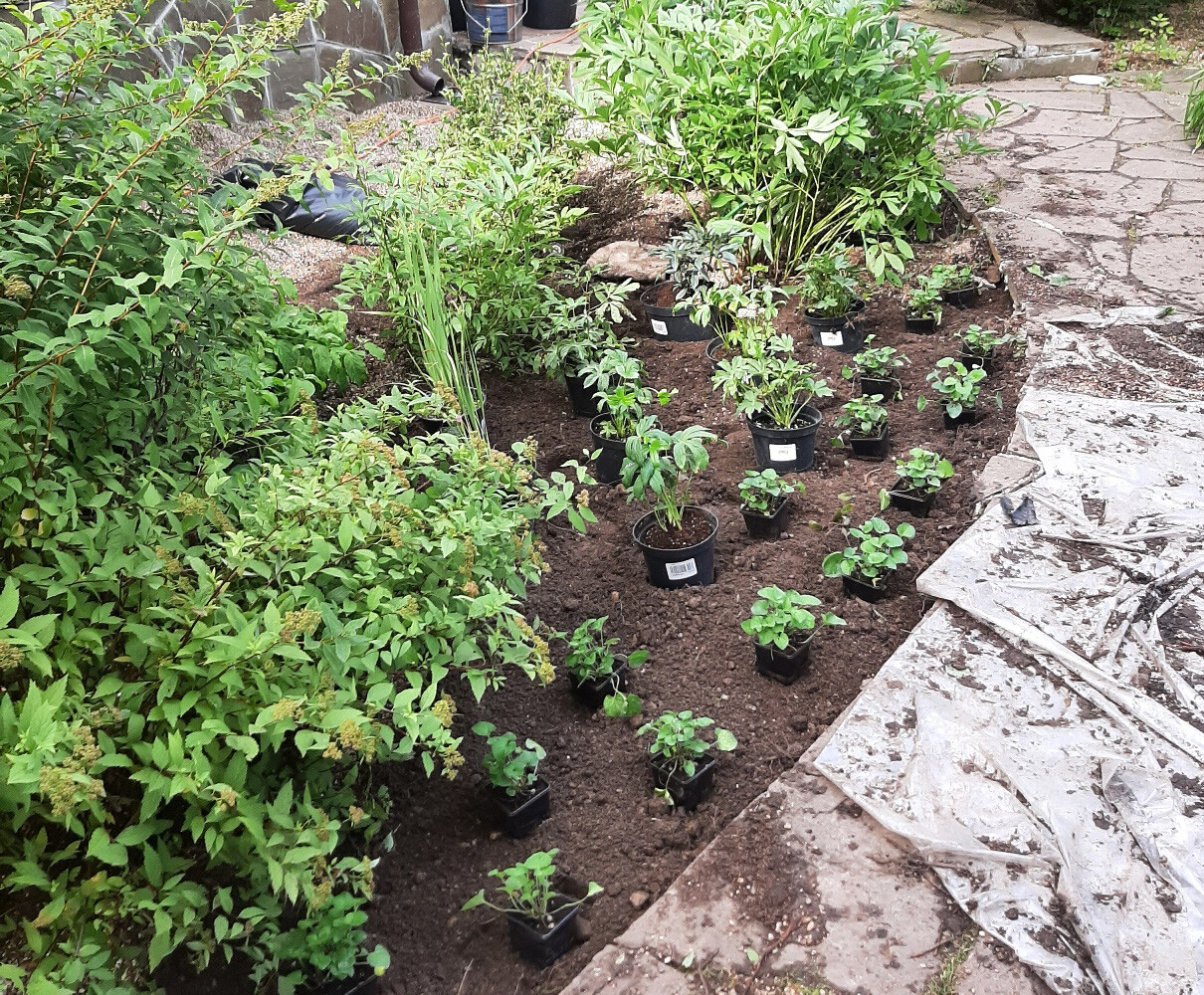 Посадки расположены с учетом освещенности и увлажненности почвы в разных частях сада и конфигурации кровель зданий (с расчетом на падение снега и льда).